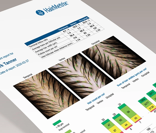 HairMetrix analisa em tempo real o couro cabeludo e folículos capilares gerando informações detalhadas para que médicos e profissionais especializados possam escolher qual o tratamento mais adequado para o paciente.